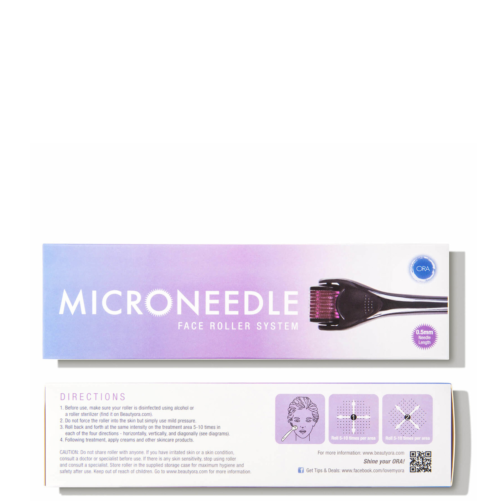 Beauty ORA Microneedle Face Roller System 0.5mm- Purple/Black